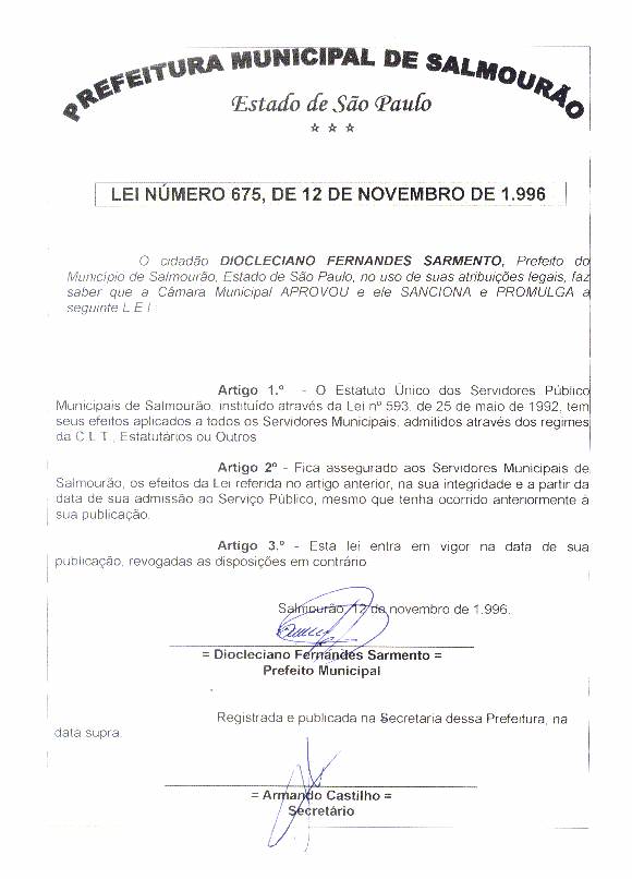 ESTATUTO DOS SERVIDORES PUBLICOS MUNICIPAIS, LEI MUNICIPAL 593, LEI MUNICIPAL 675
